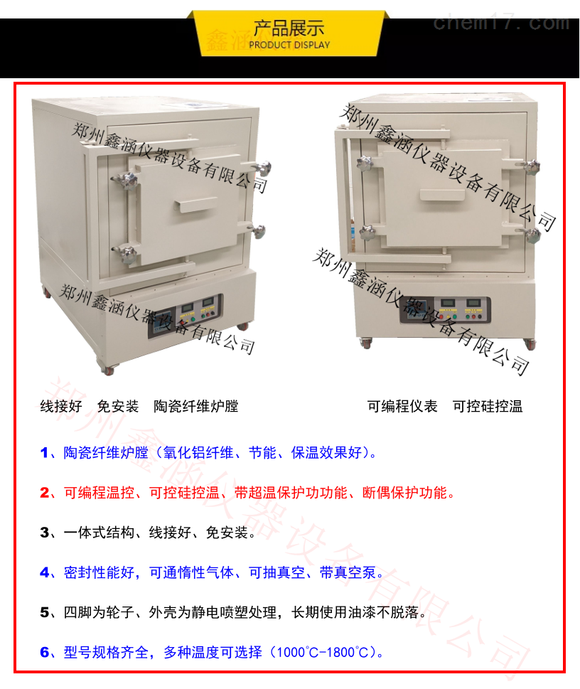 (七)搬運馬弗爐時,注意避免嚴重共振,放置遠離易燃易爆、水等物品。嚴禁抬爐門,避免爐門損壞。